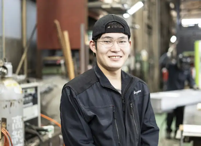 高校卒業後に職業訓練校で溶接を学んでいました。入社前には1週間のインターンを経験。その時に学校ではできない仕事をさせてもらったことで、この会社に良いイメージを持っていました。まだ入社から日も浅いですが、毎日新鮮な発見の連続です。先輩たちに支えていただきながら、とても充実した日々が過ごせています。